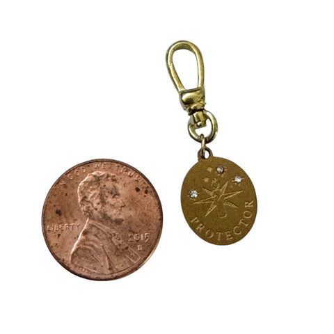 Carry protection and prosperity close to your heart with this meaningful charm. Crafted in antique gold, the pendant features a detailed Hamsa outlined in sparkling CZ stones. At its center, a hand-painted Evil Eye adds a pop of color and symbolic power. On the reverse side, the word “Protector” is engraved, making it a thoughtful talisman for good luck and guidance.