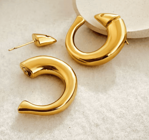 Designer-inspired sardine earrings crafted in gold plating with a unique front-and-back design, with the head sitting at the front of the ear while the body curves behind for a playful yet elegant look. Small and dainty, these earrings are easy to style and pair beautifully with many outfits for everyday wear.
