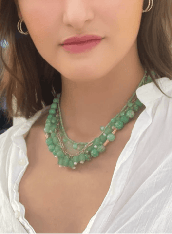 Introducing the Green Goddess Stack, a trio of stunning green-toned necklaces designed to elevate any look. Each piece features its own unique texture and personality, and when layered, they create a rich, dimensional combination that feels both luxurious and effortless.