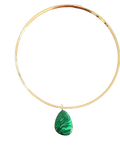 Add a bold, versatile piece to your collection with this striking malachite pendant, featured on a sleek gold-tone choker. The pendant showcases the rich green striations of genuine malachite, beautifully complemented by three sparkling cubic zirconia stones for added brilliance.